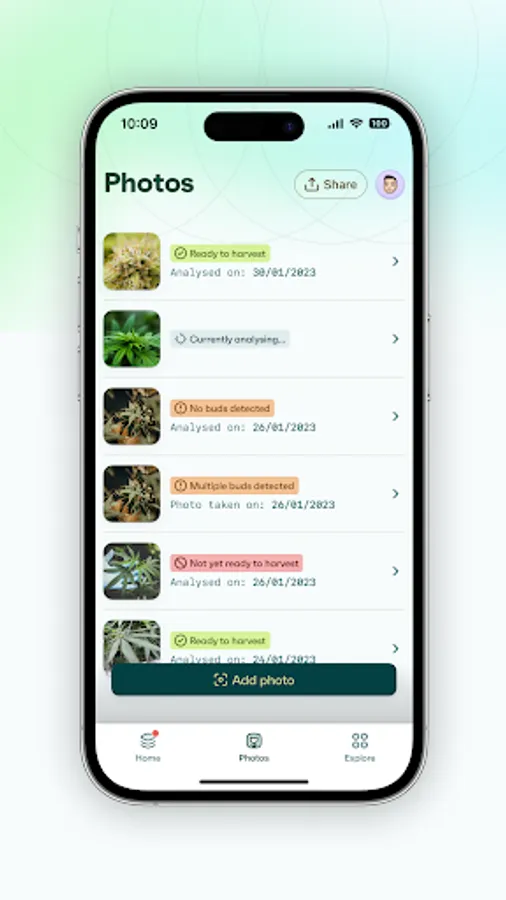 Our smart camera algorithms have been integrated to assist you in capturing a picture of your cannabis plants. By automatically detecting the bud, it guides you to take the best possible photo.