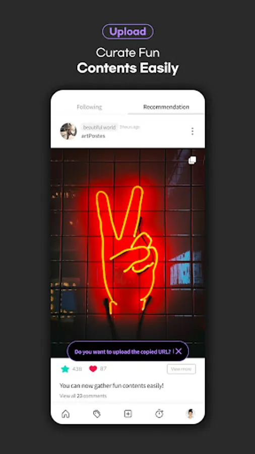 Create ‘space’ of interest and collect content with your friends. You can communicate and share articles, photos, and many other contents in your own space! Plus, you can be creative and create the space according to the category that you like.