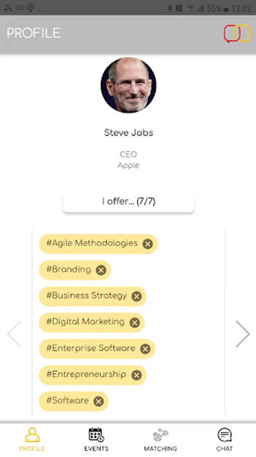 WeMatch provides an easy way for networking at organized business events. With auto match-making, WeMatch can bring together specific groups of people, who wouldn't meet each otherwise.