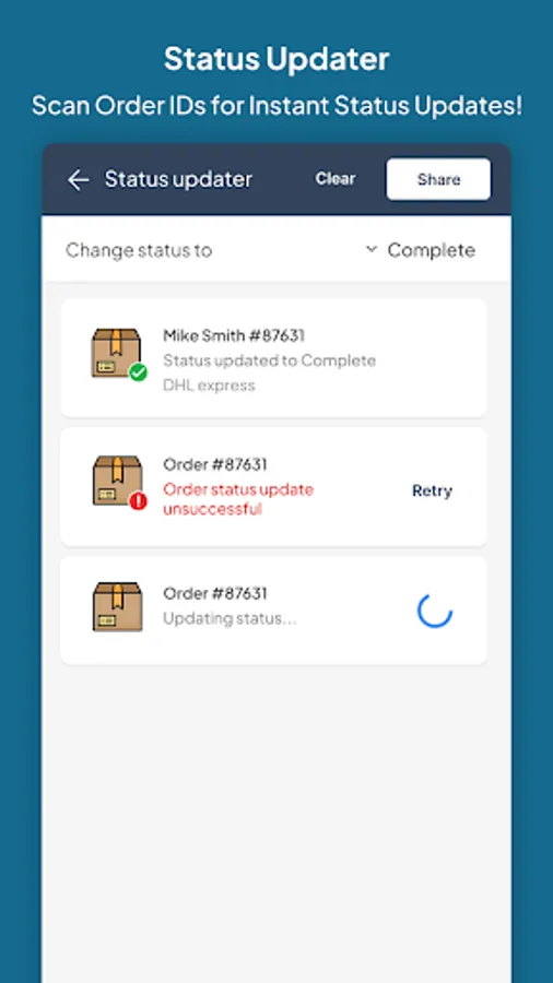 Scan order ID barcodes effortlessly to instantly retrieve order details. With Hippoo!, you can easily track the status of orders, view important information, and keep customers informed about their shipments, fostering a positive shopping experience.