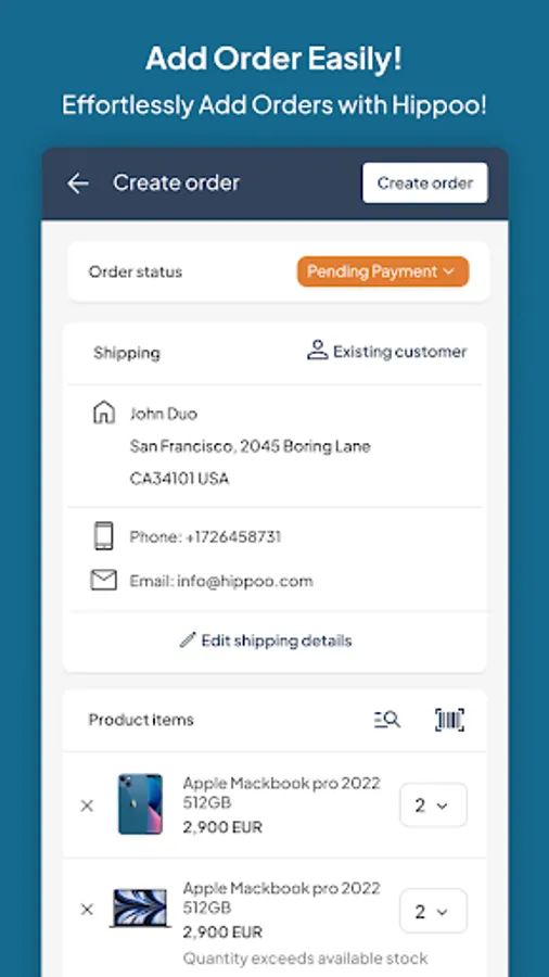 Hippoo! is an exceptional Android app designed to streamline and simplify your WooCommerce shop's order fulfillment, product management, inventory control, and more.