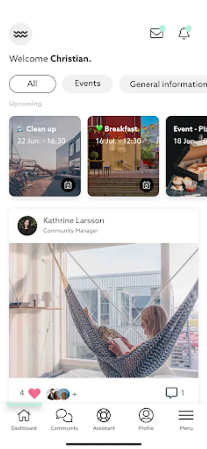 The CPH Village app improves your living situation! Get help, find information about your apartment, book shared facilities, and more!