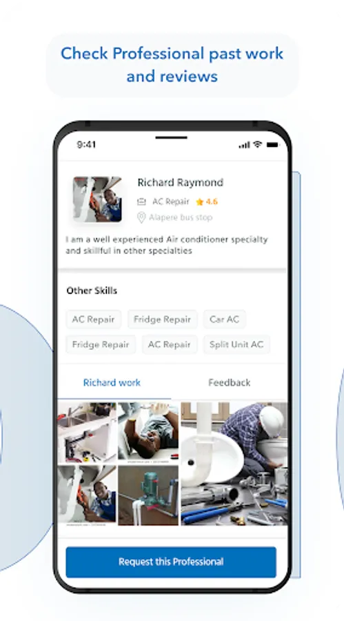 Click on the profile of the professionals of your choice and request for their service of your preferred professional.