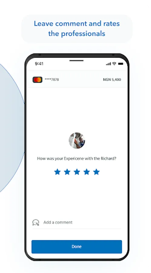 After the job is done, choose your payment options and also rate the performance of the professional.