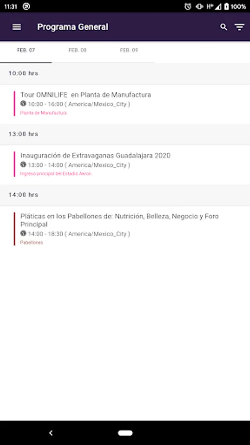 You can visualize the itinerary, information of the places of visit, information of the trip, information of your arrival, general information, exclusive content and sequence of activities; receive notices and last minute alerts according to your location; directions on the trip; relevant information, among others.