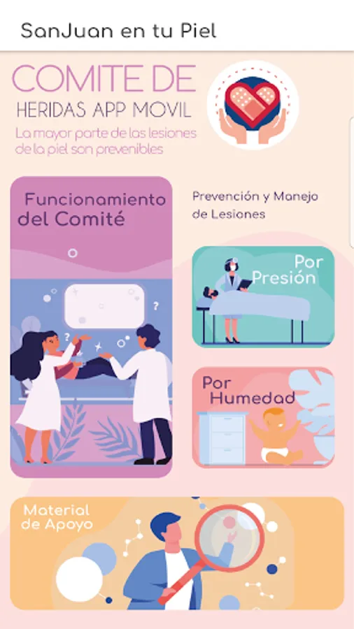 This application was made by staff of the Injury Committee of the San Juan de Dios Hospital in order to provide tools and information on the operation of the committee and the prevention and management of injuries. It also has audiovisual support material for a better understanding. This application seeks to deliver useful and timely information for the user.