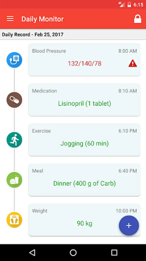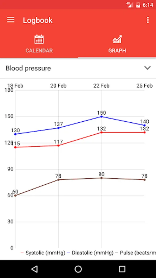 - Displaying a graph view of blood pressure, weight, carb consumption, and time spent on exercises based on the recorded data as a way to monitor and review your blood pressure through a certain period of time. This provides an easy way for you to analyse what had positive and negative impact on your blood pressure and thus make improvement.
