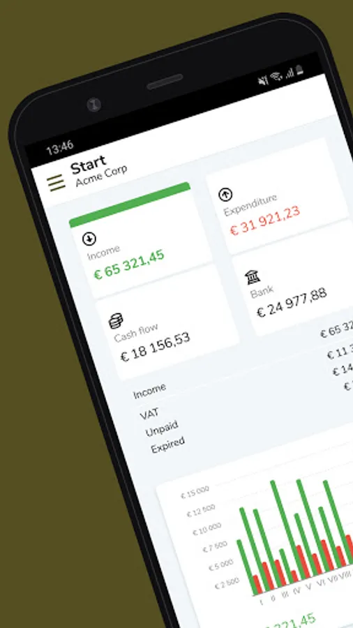 get an overview of your outstanding invoices, the balances of your linked bank accounts and cash flow on the dashboard.