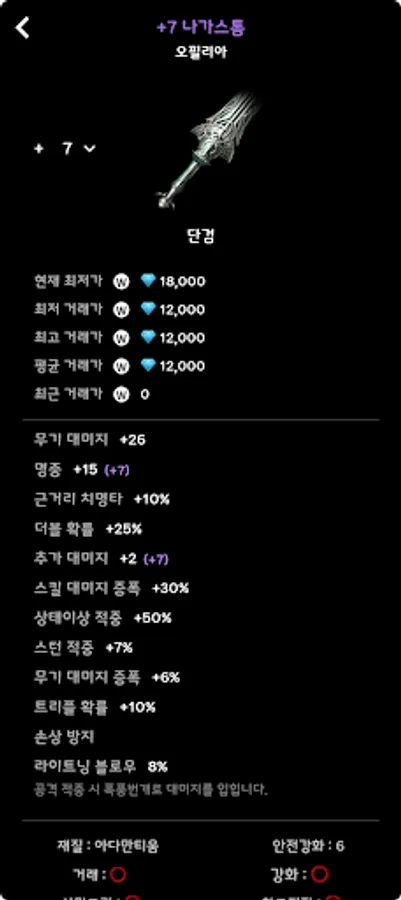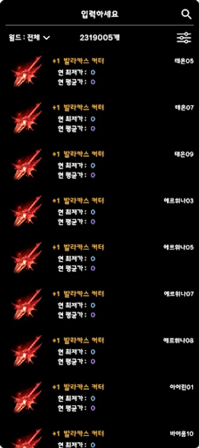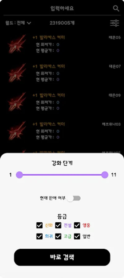 Search item information according to the market price and enhancement level of Lineage 2M items.