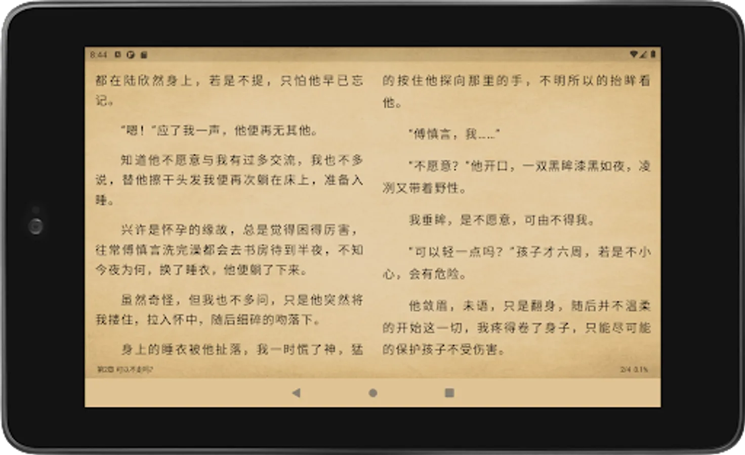 模仿实体书翻页3D效果、定时休息、离线下载、夜间模式、随意调节