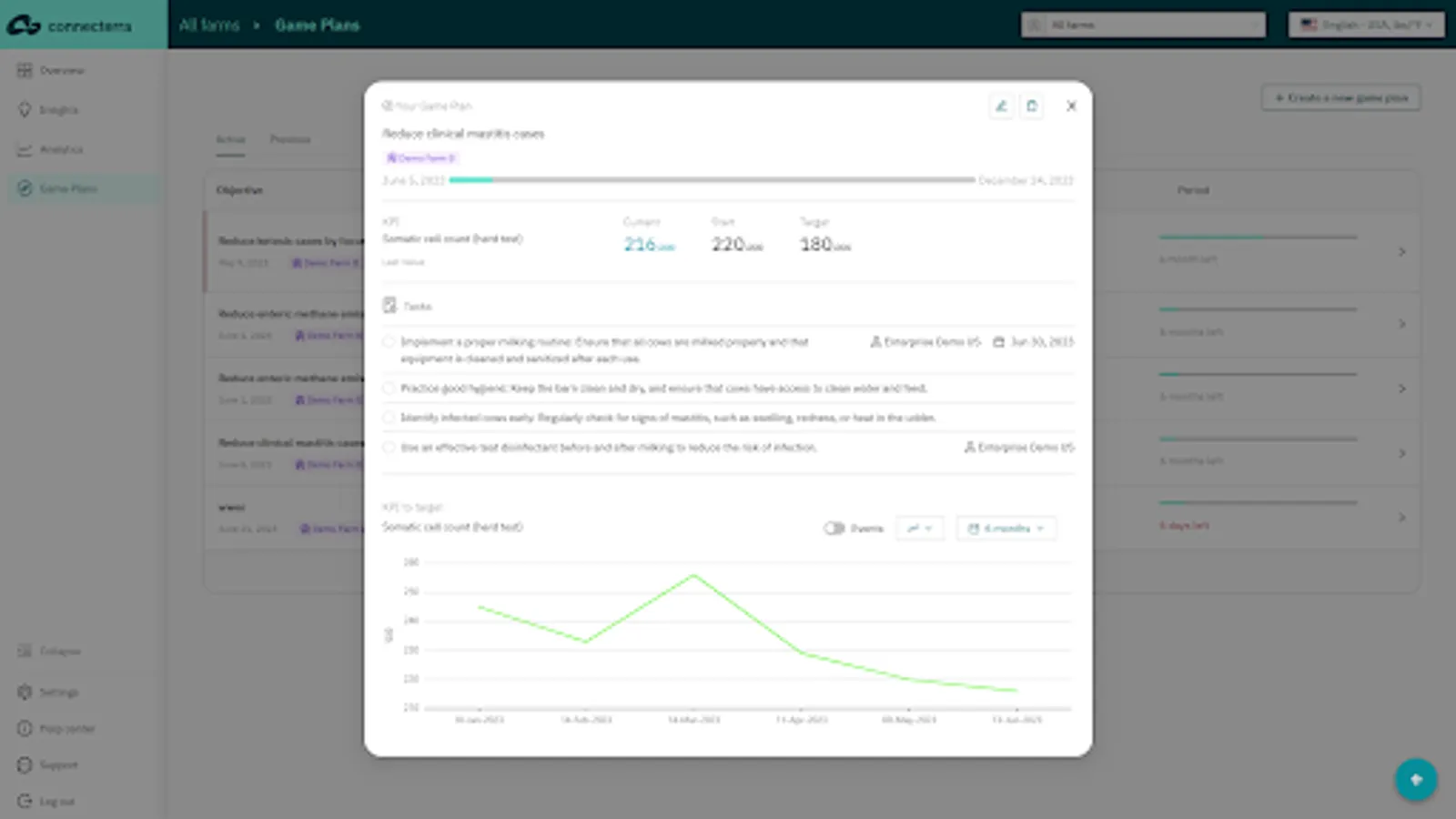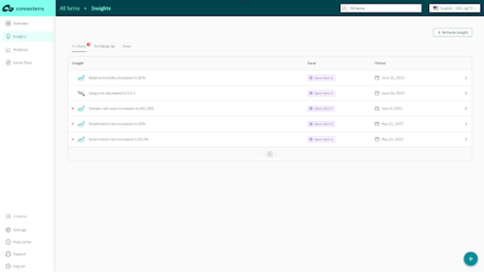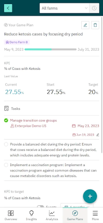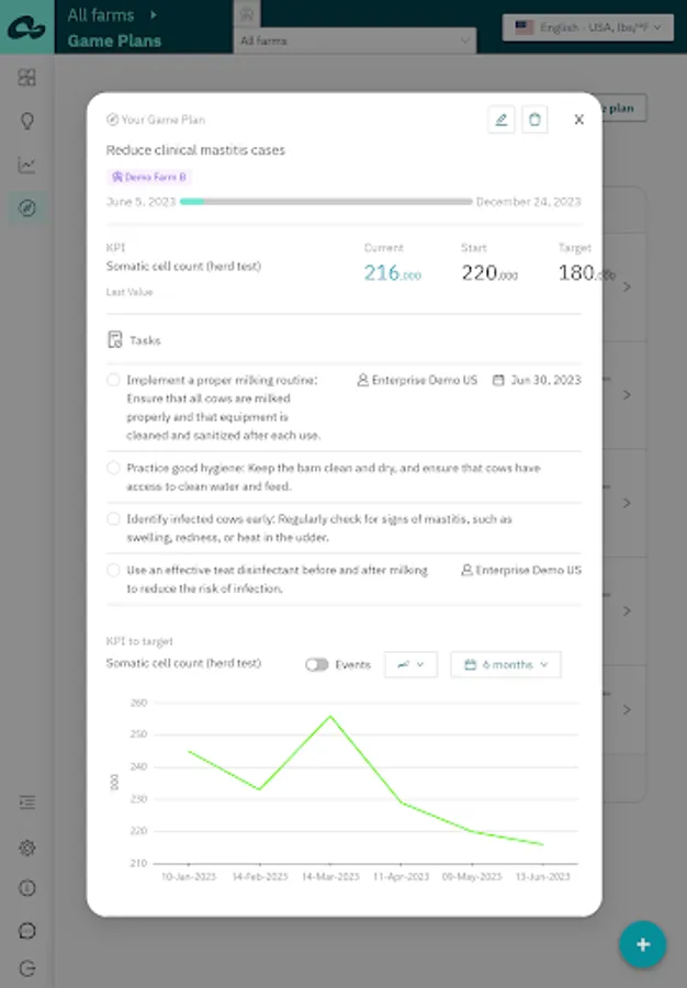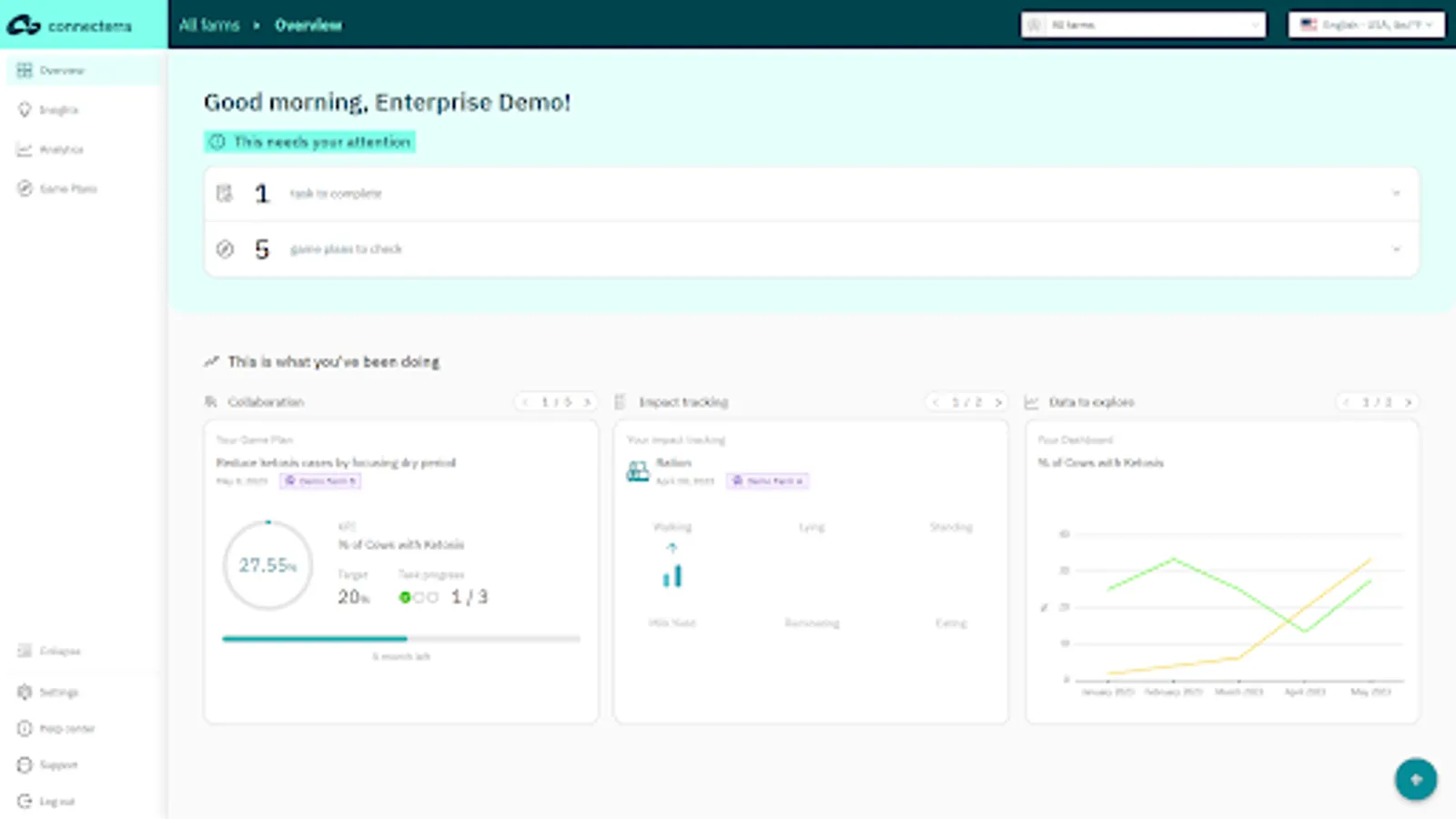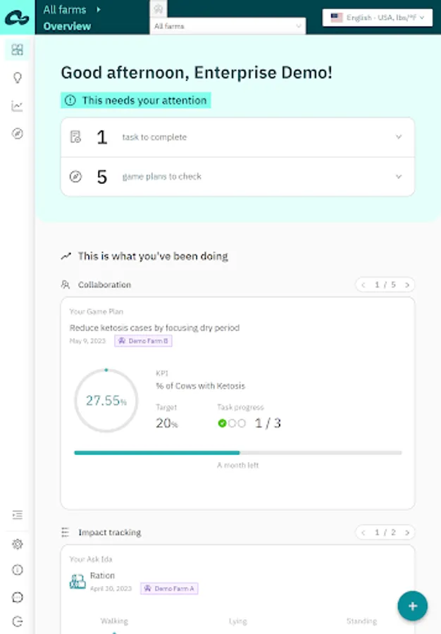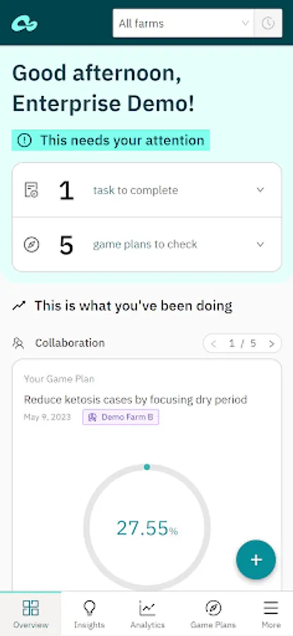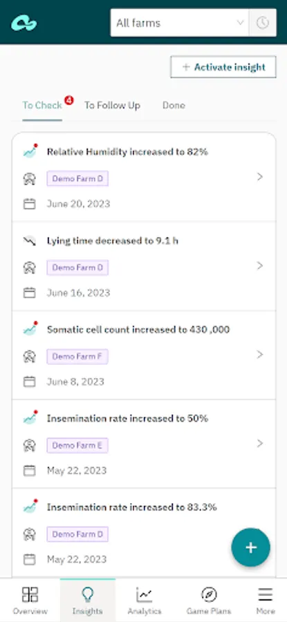 The Connecterra app provides insights into key farm KPIs and tools that help you to proactively identify issues or opportunities with customers, collaborate on action plans and demonstrate the impact of your recommendations.