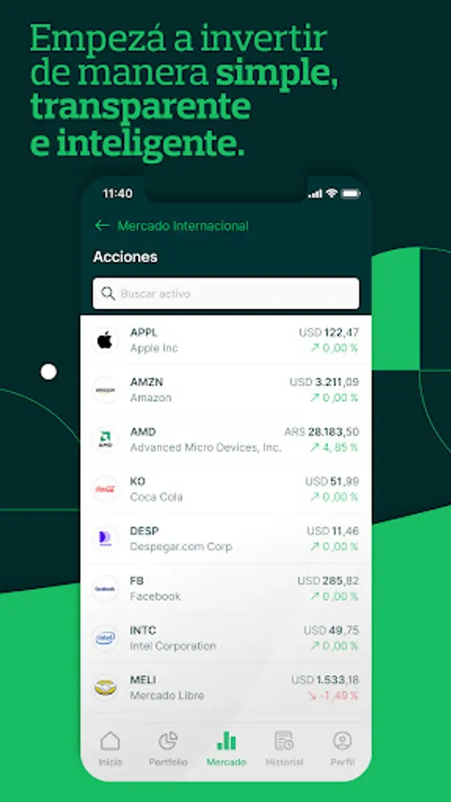 For this reason, we developed an app that guarantees security and ease in each operation. With more than 220 advisors registered by the CNV. And with a wide variety of financial instruments from the local and international market to diversify your investments.