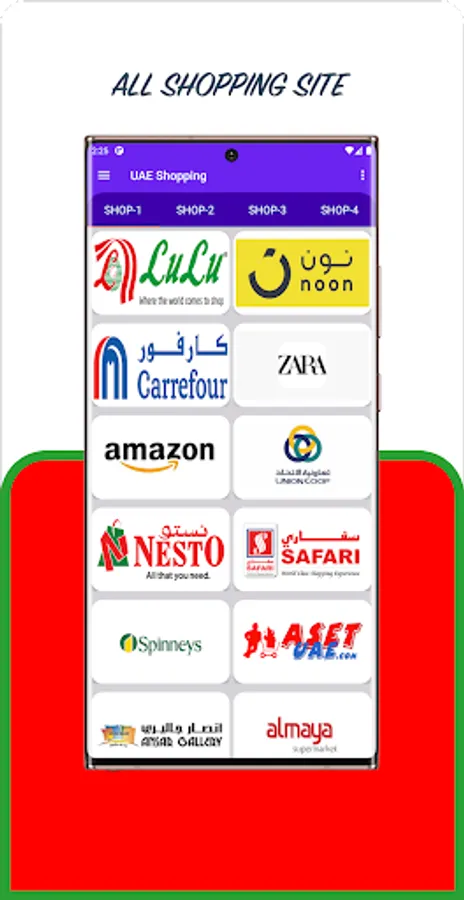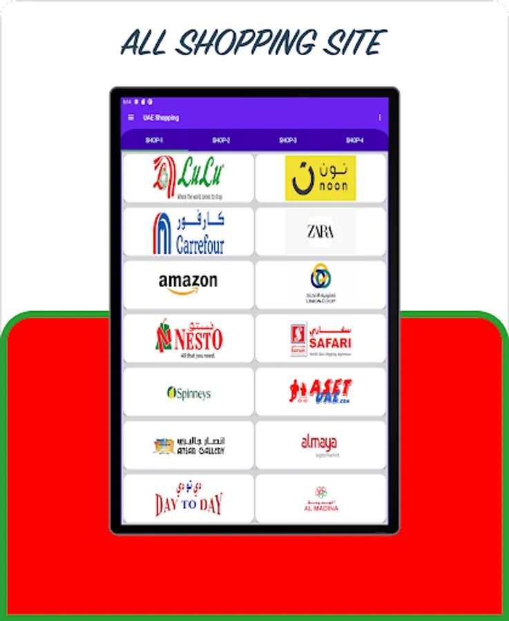 All in One Shopping App for UAE Online Shopping App. Collection of 100+ Online UEA Shopping apps. We have combine All Shopping Apps into single All in One Shopping app. Download All in One UAE Shopping App and start shopping on all famous shopping Portals. Easy to Use, Shop Any Site, Deal of The Day, Limited Ads, 100% Safe & Secure, Lotte of Offers. Online shopping application for Abu Dhabi (UAE), Dubai (UAE), Sharjah (UAE), Ajman (UAE), Umm al Quwain (UAE), Fujairah (UAE), Ras al Khaimah (UAE), Al Ain (UAE).