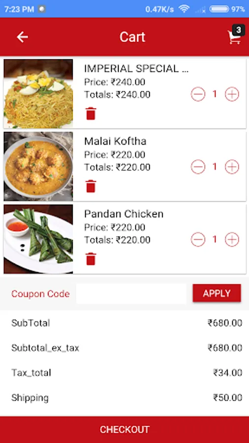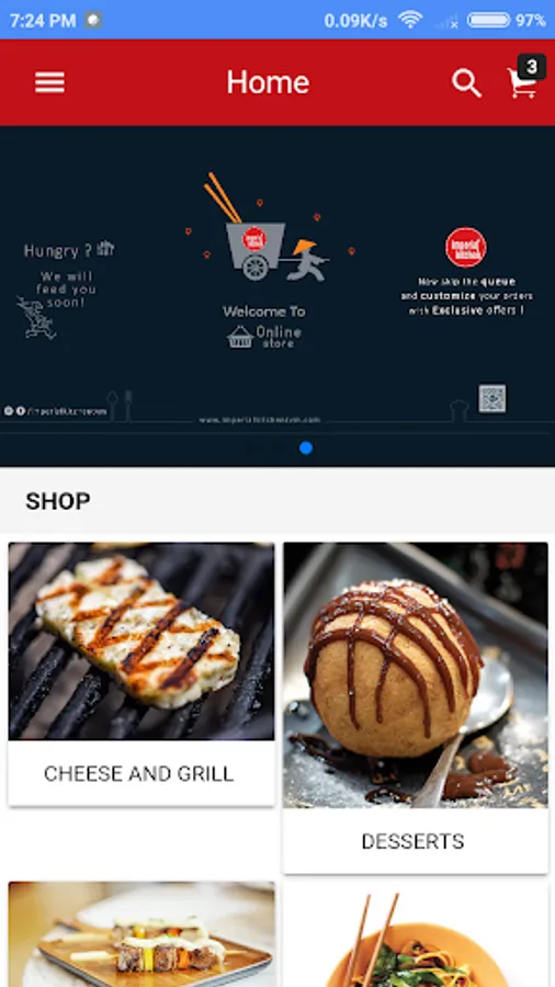 At Imperial Kitchen, we serve an array of traditional as well as fusion cuisines from various parts of the world, from Italian Pizza and Pasta to fish green mango curry brought from the backwaters of Kerala. We have equipped our menu with something or the other for every discerning palate. For better understanding, and ease of choice, we have laid out our menu with separate branding for each type of cuisine we serve, i.e. “Cheez n’ Grill” for Continental, “Nooshi” for Chinese & Thai, “Vibhav” for Indian and “Lebnani” for Arabic cuisines.