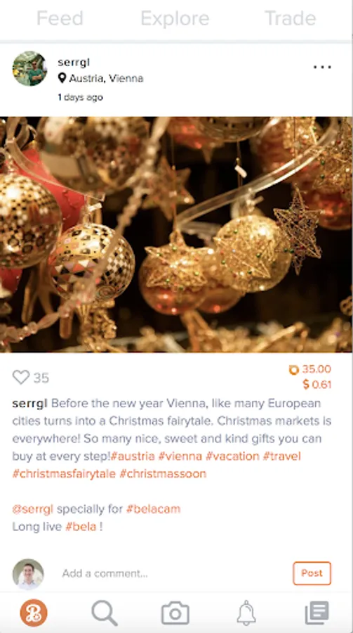 1) Post Great Photos: Share photos from your life to Belacam, and earn about $.01 to $.02 for each like that you get.