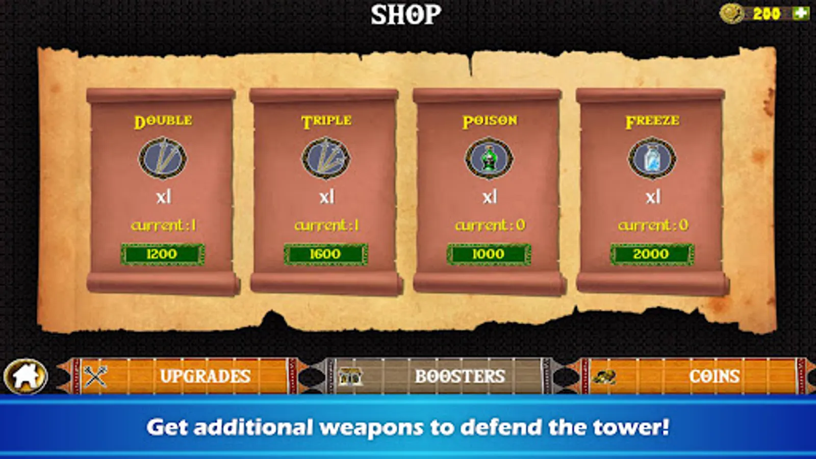 Get coins and open new levels. Every single level will reveal you as a real defender. Destroy the monsters and defend your castle!