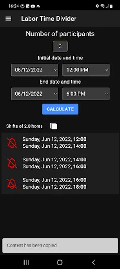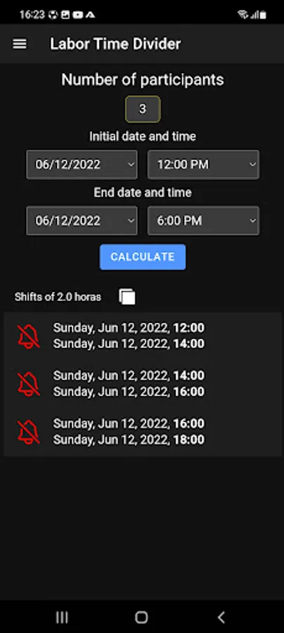 Another functionality of the applications is that you can set an alarm for the selected shift.