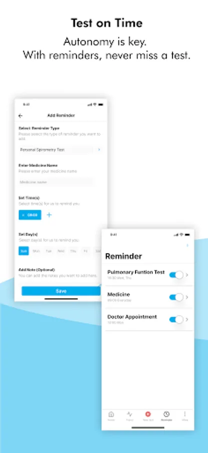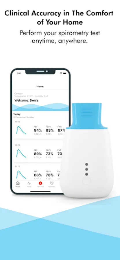 Conduct lung function tests at home with the CE-certified SpiroHome Personal ultrasonic spirometer, and track your lung health trends with the SpiroHome app.