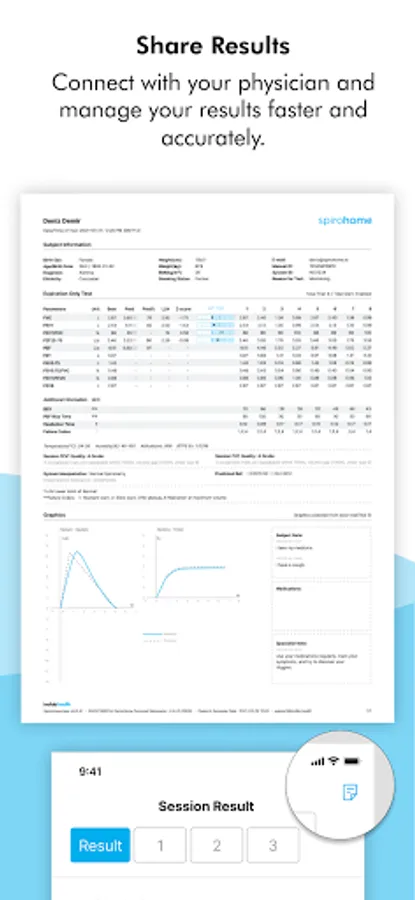 Reports generated with the SpiroHome Personal App allow doctors to gauge data validity, disease progression, and response to treatment. Doctors and patients are given the best position to take action together.