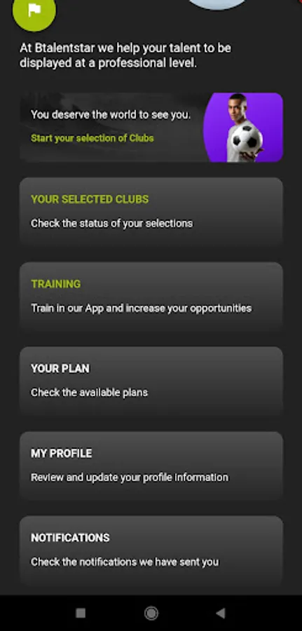 We are a mobile application that remotely connects sports talent with professional soccer clubs. The athlete, through the creation of a digital sports profile according to his position on the field, allows the scouting of the professional soccer club to view and select for an exclusive national and international test. We invite you to prepare yourself in advance through our professional soccer training exercises, to increase your chances of being selected in your favorite professional club.