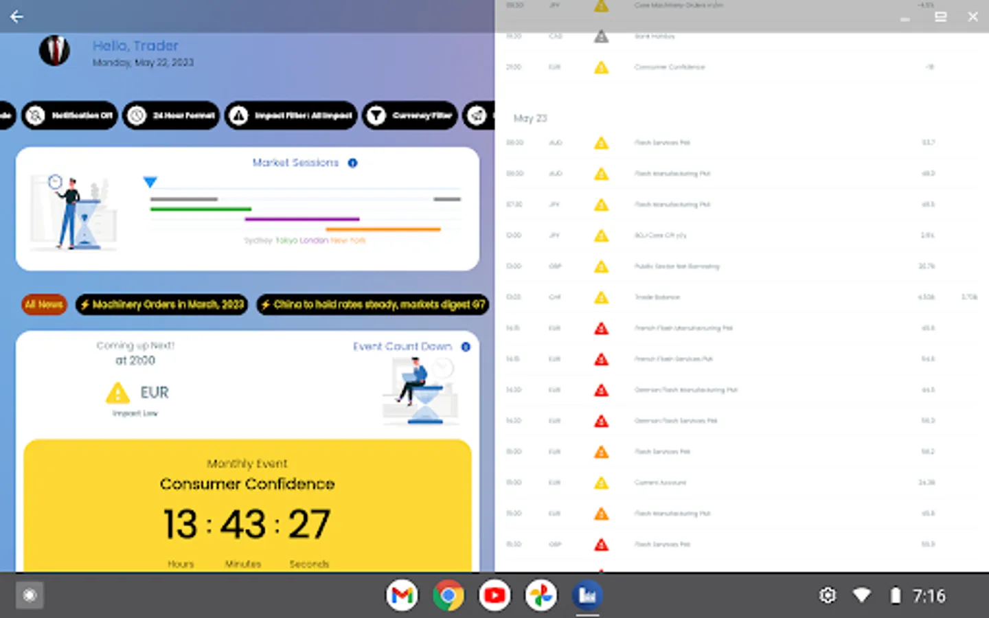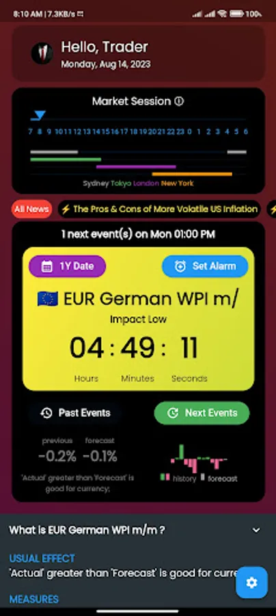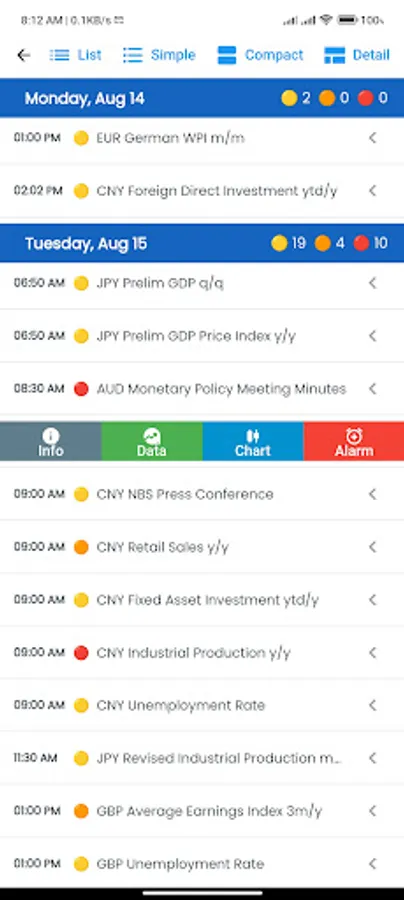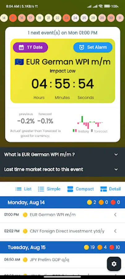 - Switch between showing All Events, Medium-High or High impact