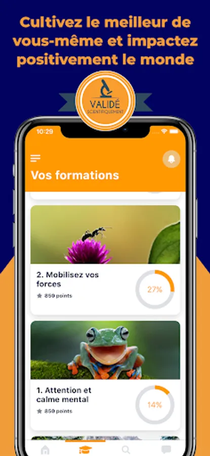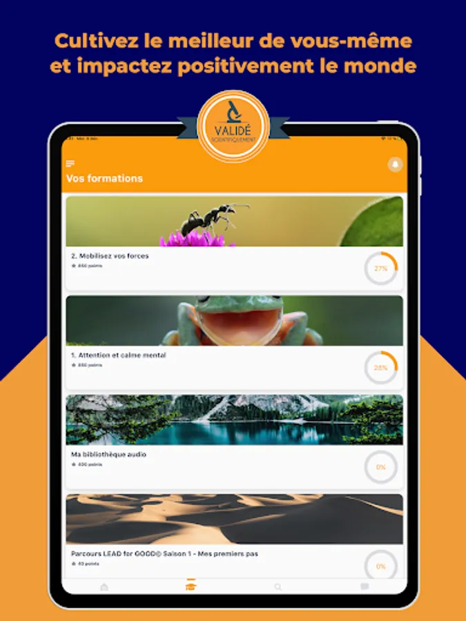 After 7 years of scientific research with the greatest researchers and already several thousand people trained around the world, our Institute is happy to offer you season 1 of Lead for Good ®. A unique, fun and simple personal training course to develop your human and relational skills. The application gradually accompanies you in the acquisition of new useful skills to flourish at work, improve your performance and reveal the best of yourself.
