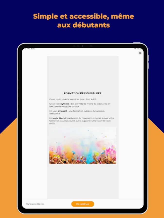 > Short exercises, games, quizzes. Most only take 5 minutes and the first benefits come very quickly!