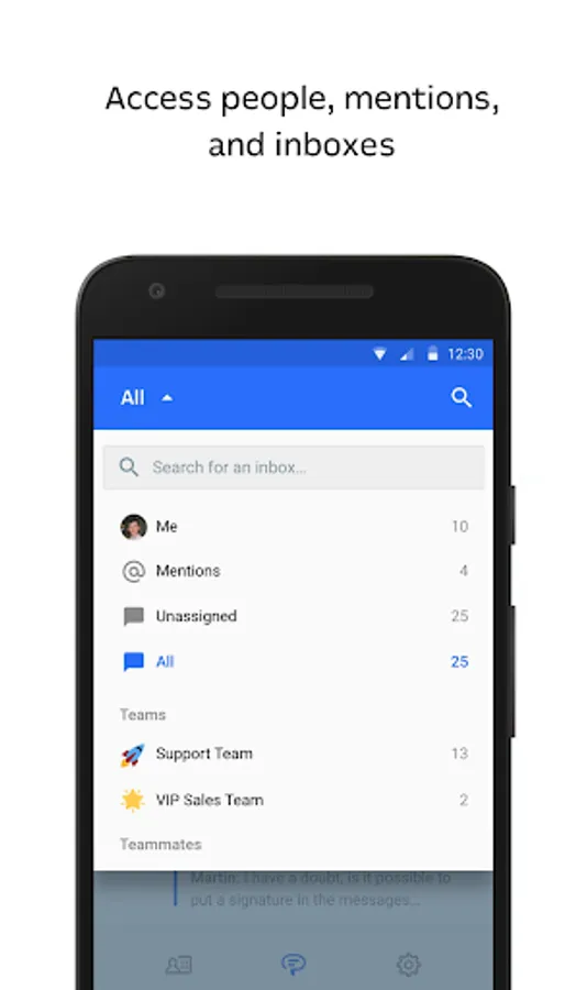 View and assign conversations, see where you’re mentioned, and collaborate with your team using internal notes