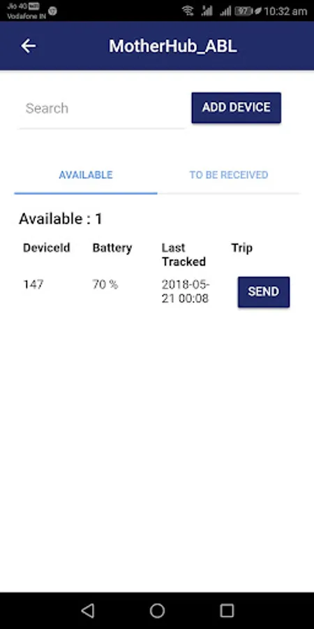 This app facilitates sending, receiving and managing tracking devices for usage under multiple warehouses.