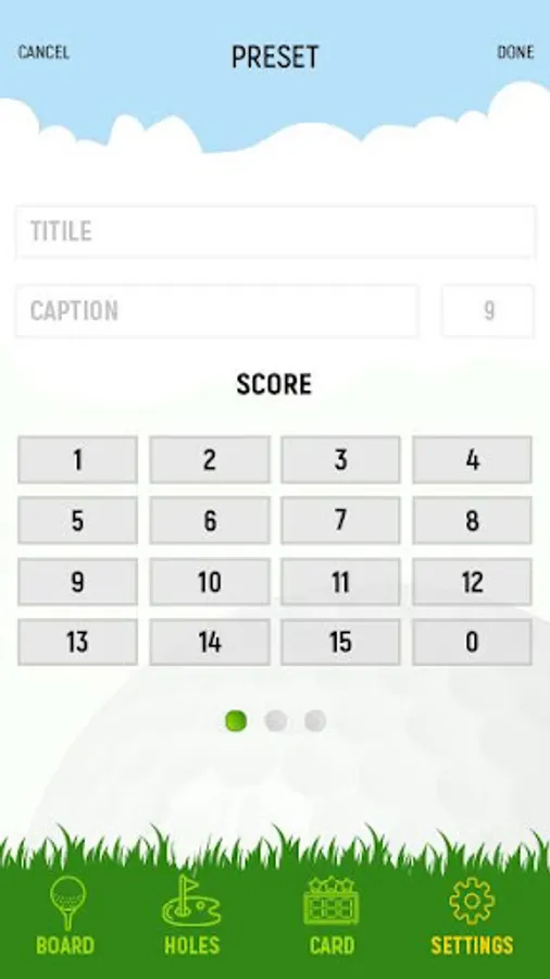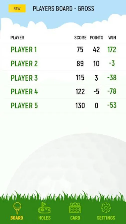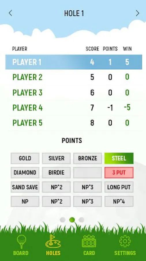 -The number of players,the number of holes,and the contents of points can be customized freely by the user.