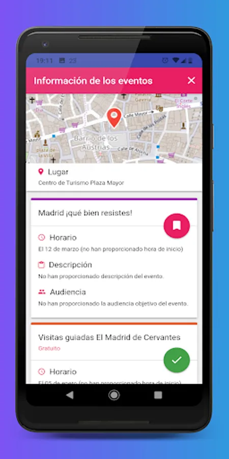 Select the events close to you and if you are interested in attending one or several of them save them to be able to consult them later.
