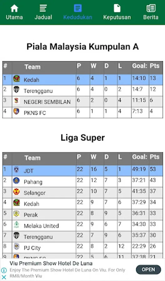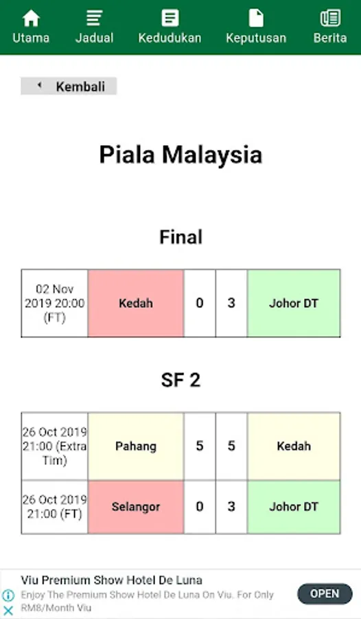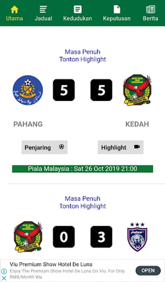 - Auto kemaskini untuk keputusan perlawanan yang sedang berlangsung (Laman utama dan laman Penjaring)