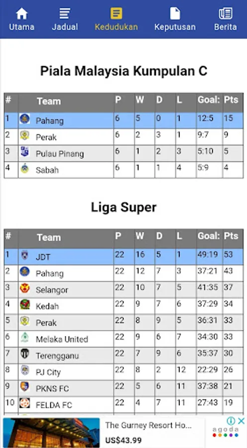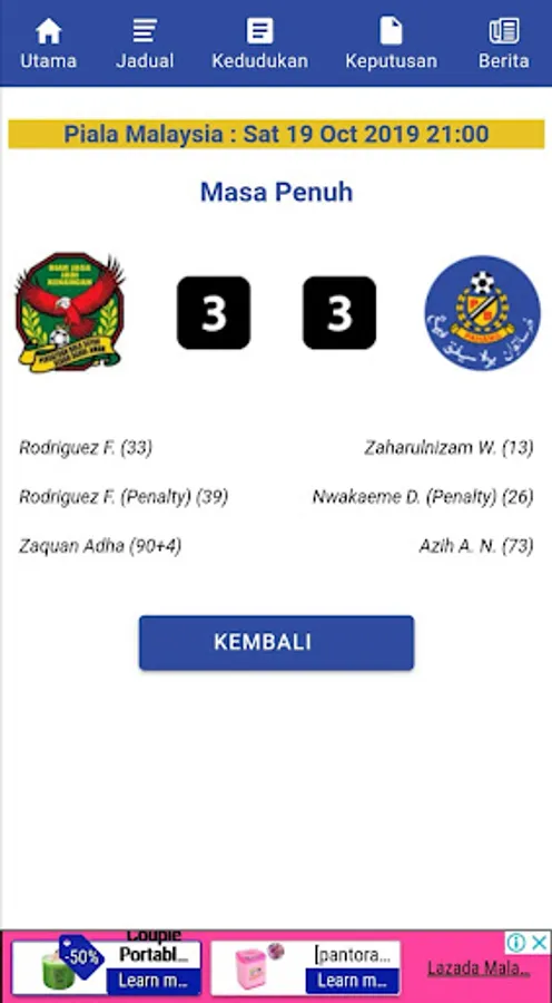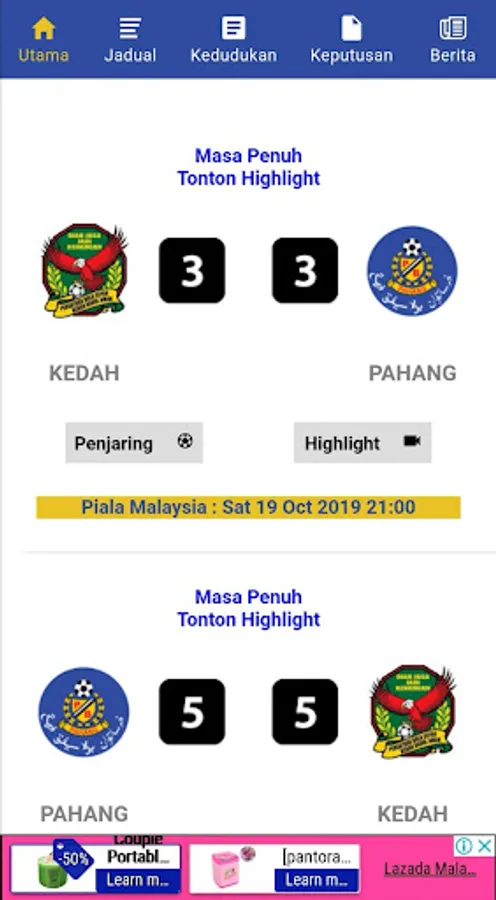 - Auto kemaskini untuk keputusan perlawanan yang sedang berlangsung (Laman utama dan laman Penjaring)
