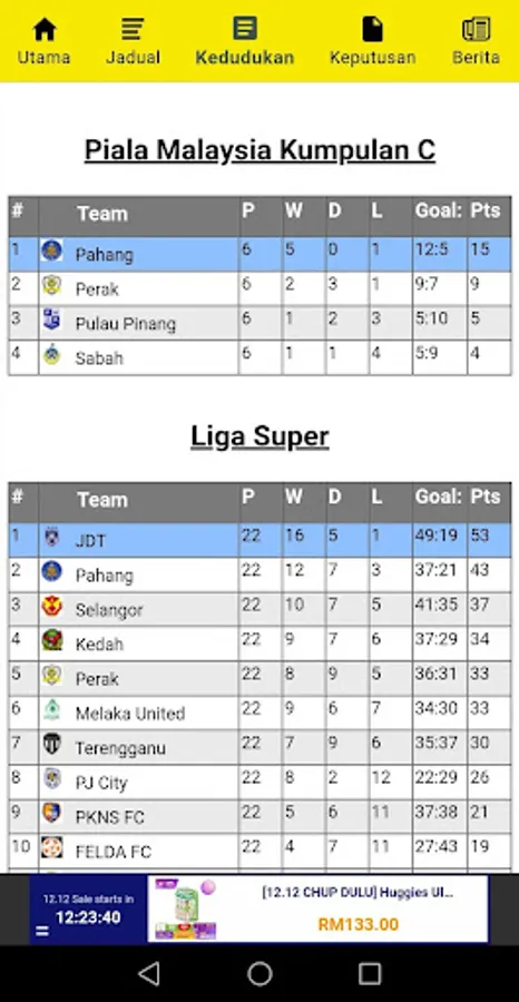 - Auto kemaskini untuk keputusan perlawanan yang sedang berlangsung (Laman utama dan laman Penjaring)