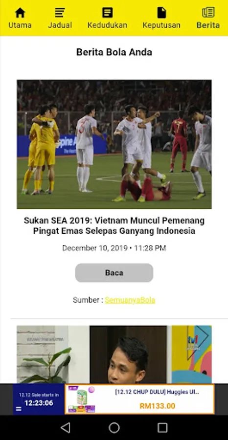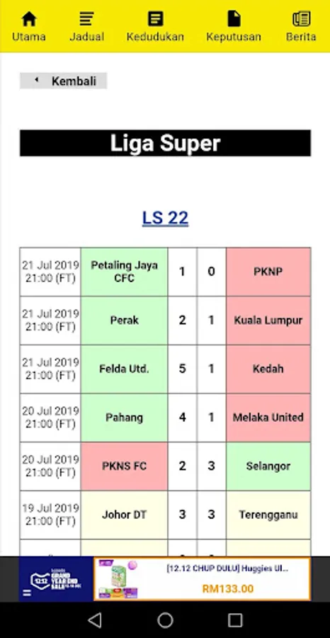 - Keputusan perlawanan berserta penjaring gol