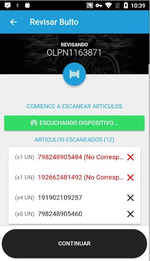 Mobile platform operative and available for retail stores whose objective is to receive SKU-type and package-sent inventories from the distribution center, other stores and third-party suppliers, establishing a control and cross-checking of information with WMS and triggering integration instances for incorporation automatic inventory to store system and central ERP.