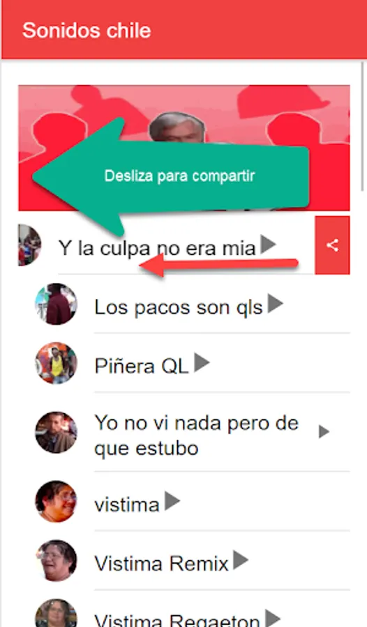 Listen to the sounds and songs of current Chilean memes, also swipe left to share the video on your social networks.