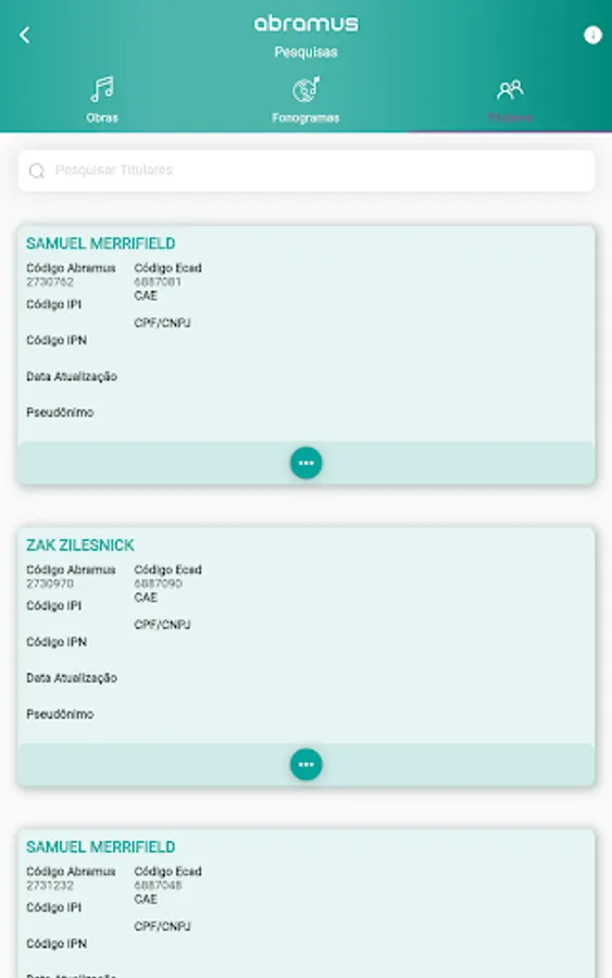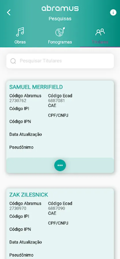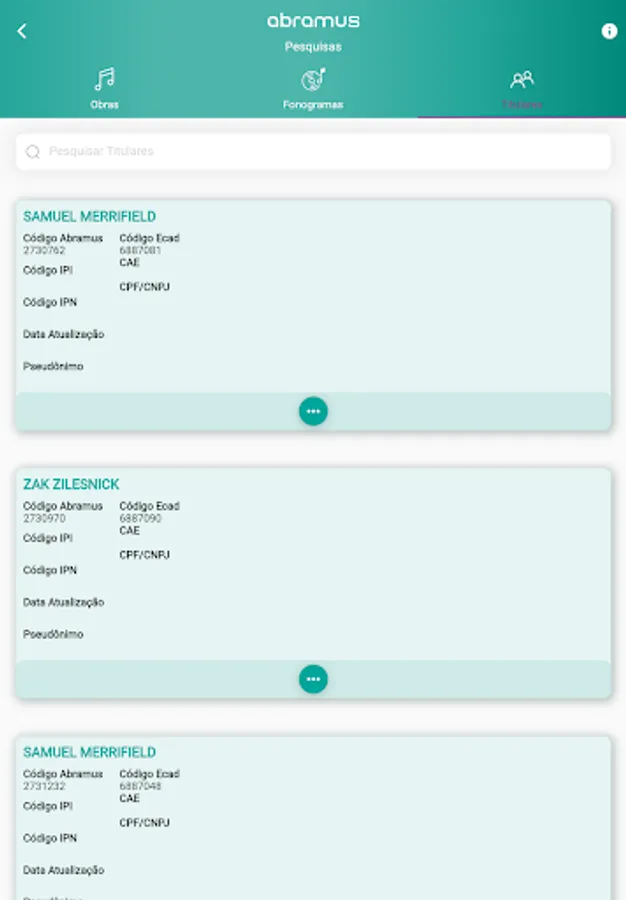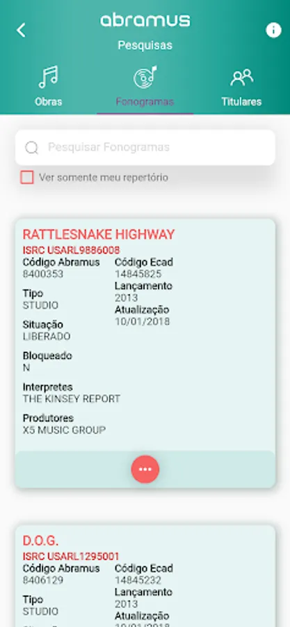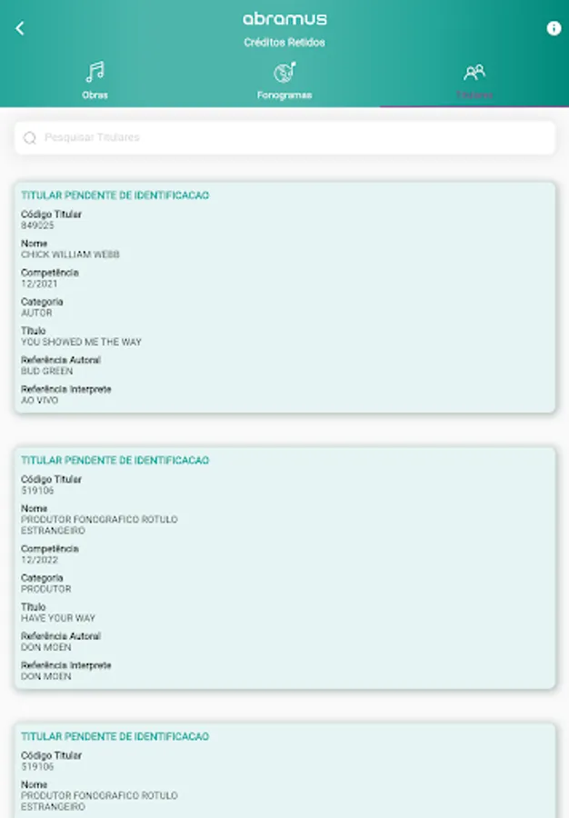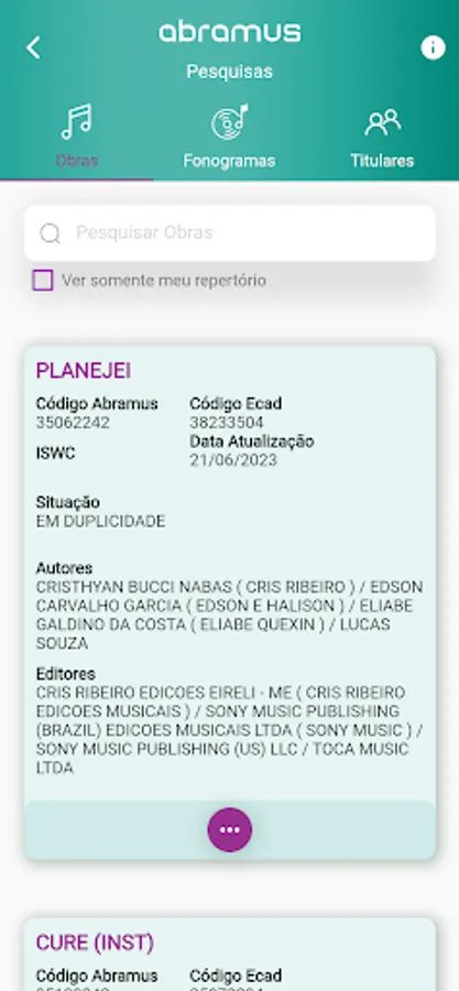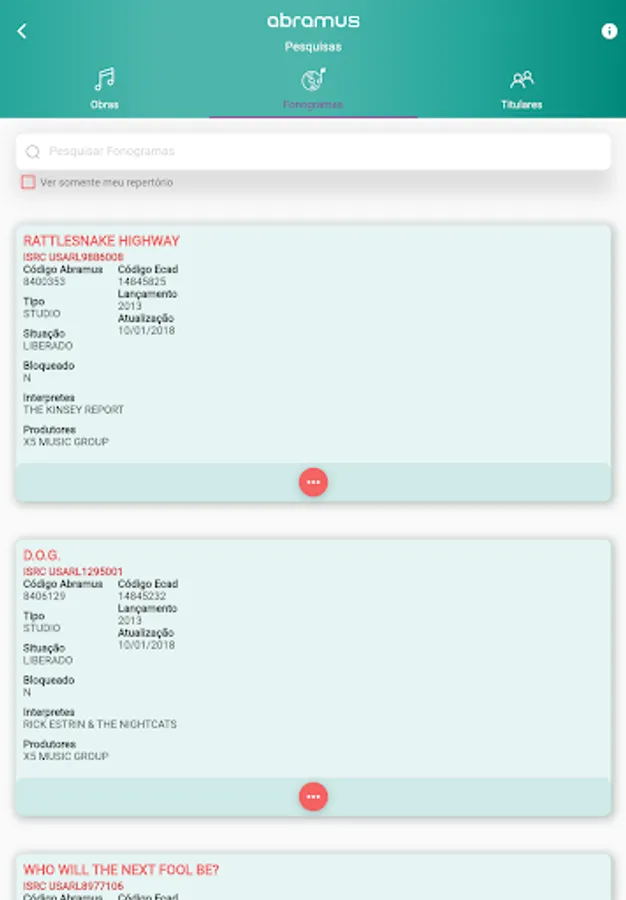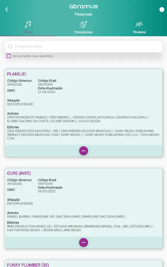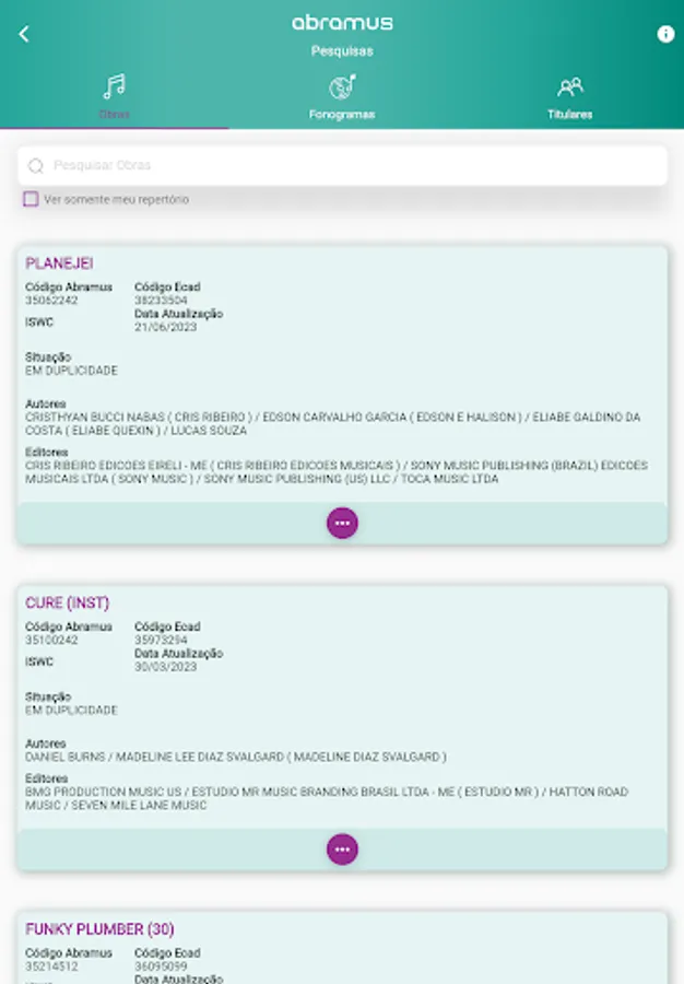 Search for Repertoire of Rights Holders: Efficiently access information about rights holders of works and phonograms.
