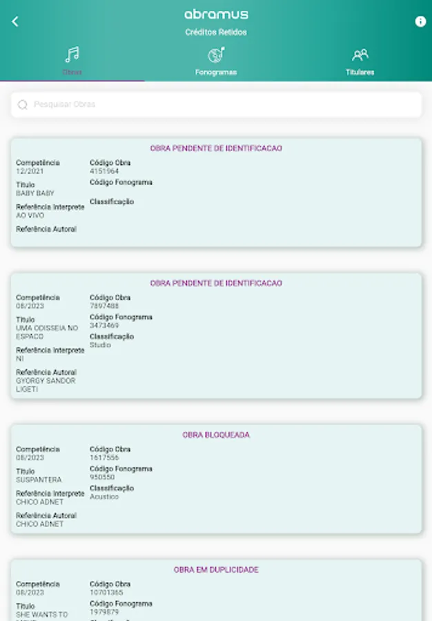 Search for Withheld Credits of Works, Phonograms, and Rights Holders: Simplify the process of releasing withheld credits by searching for them directly within the app.