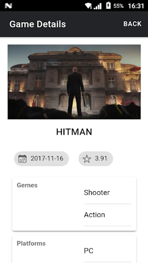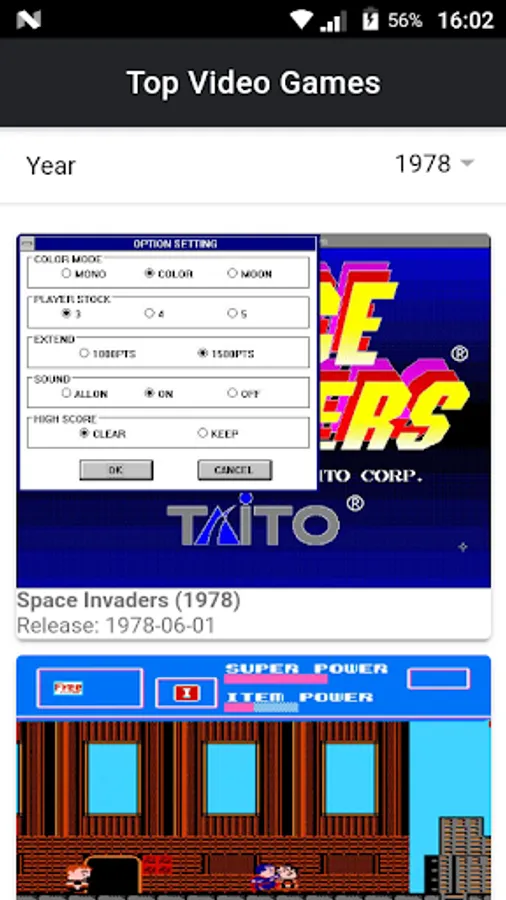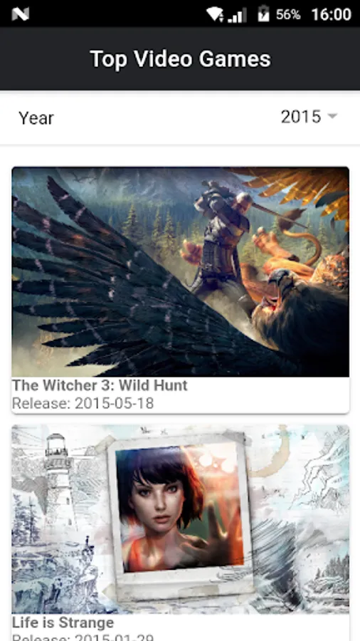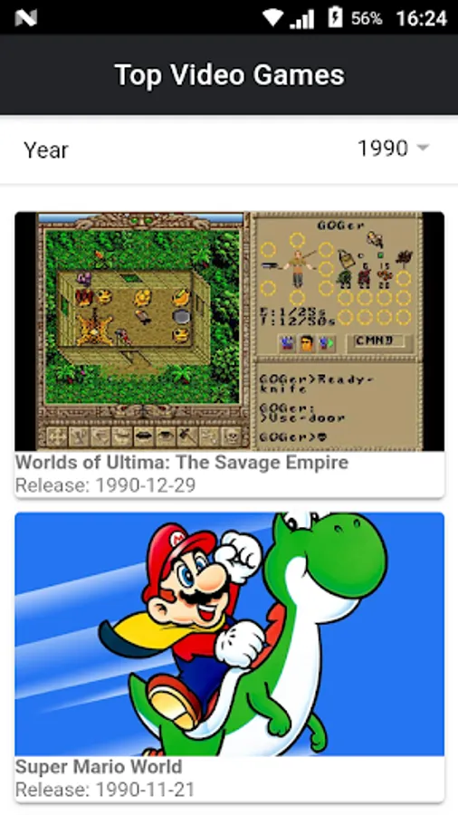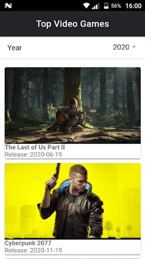 The application displays the top rating video games for each year. Internet connection is necessary for application operations.
