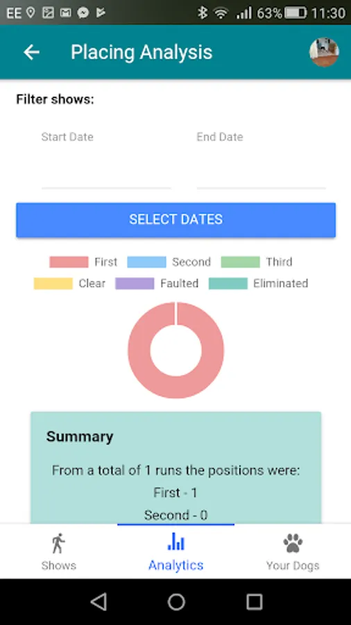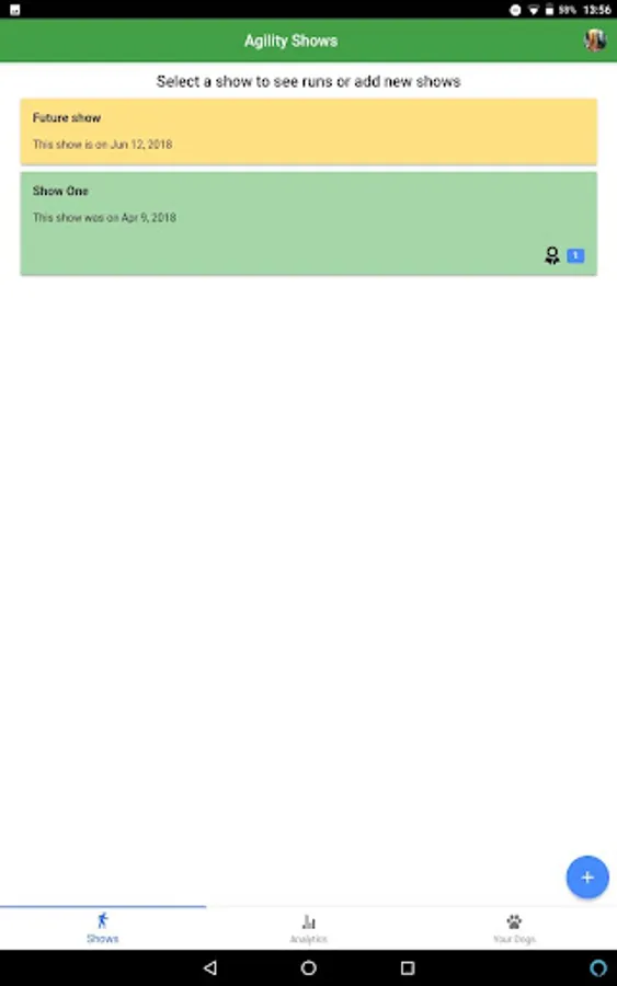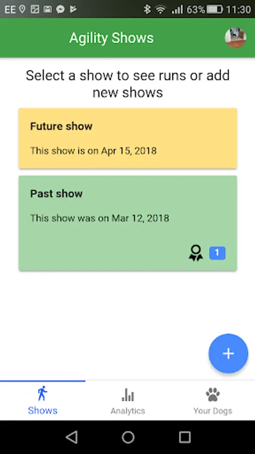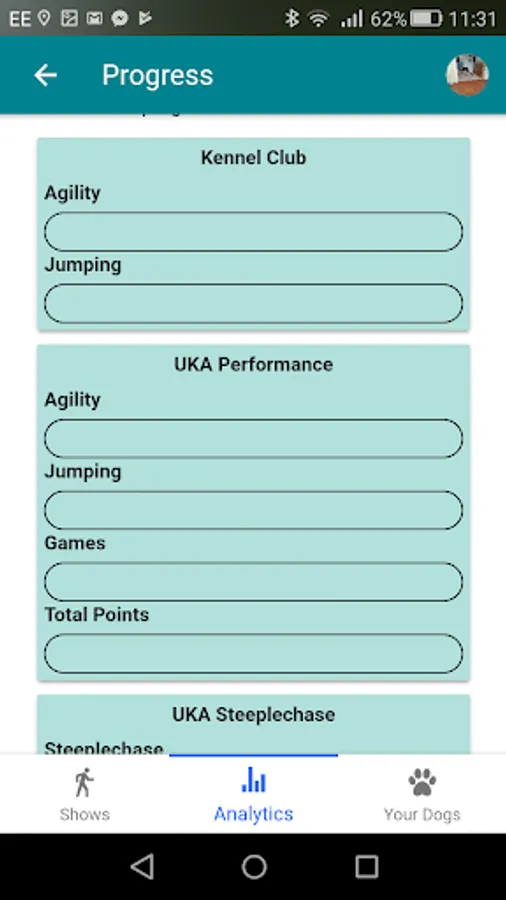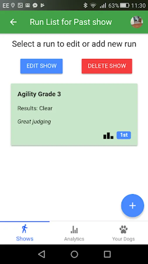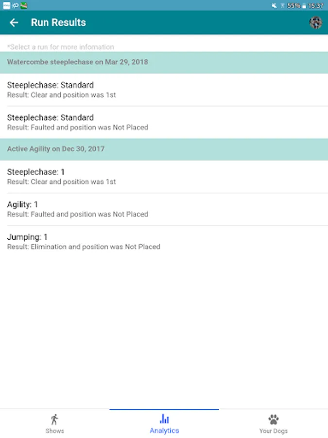 AgiliTrack let you keep track of all your dog agility shows and individual runs for multiple dogs. You can upload pictures for each run, you can also see statistics from all your runs, including:
