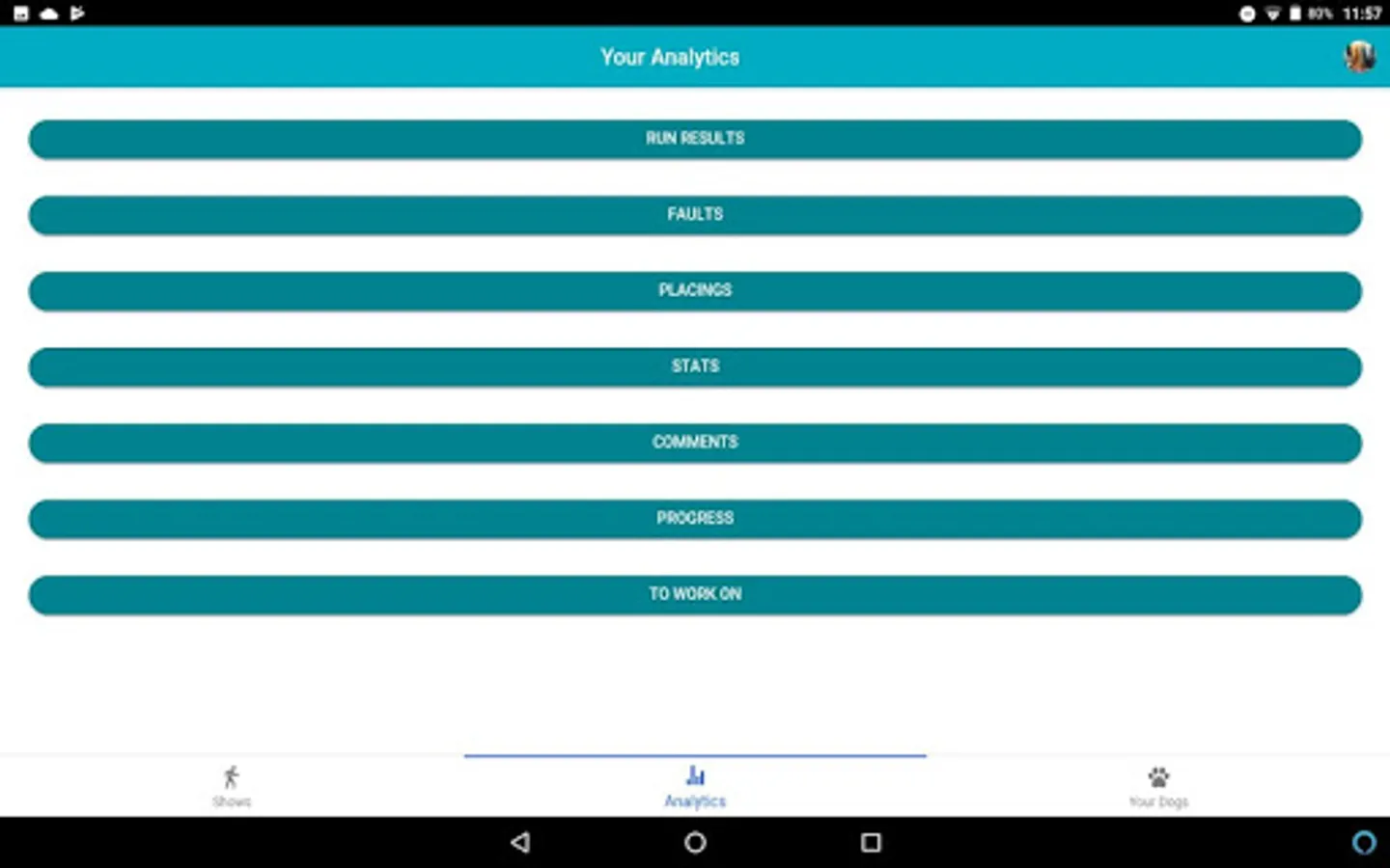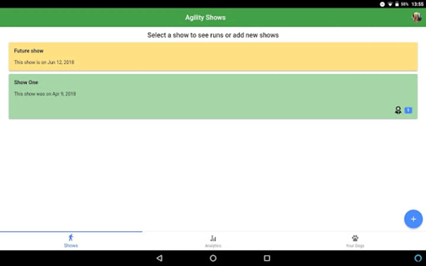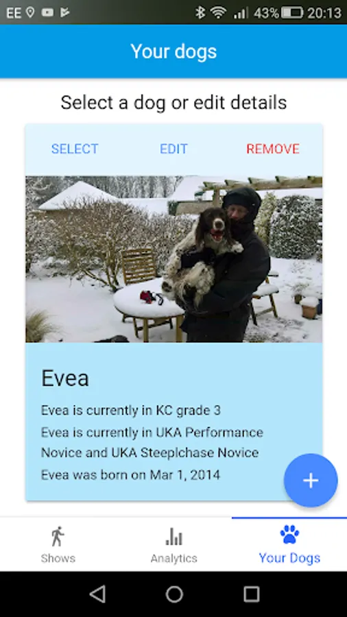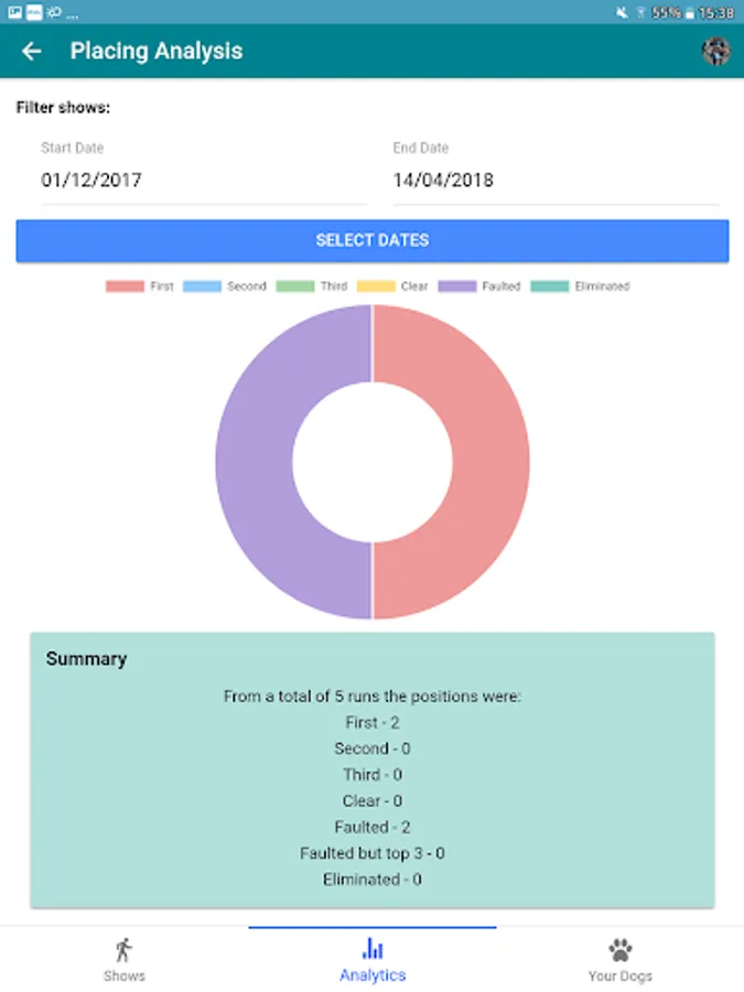 AgiliTrack let you keep track of all your dog agility shows and individual runs for multiple dogs. You can upload pictures for each run, you can also see statistics from all your runs, including: