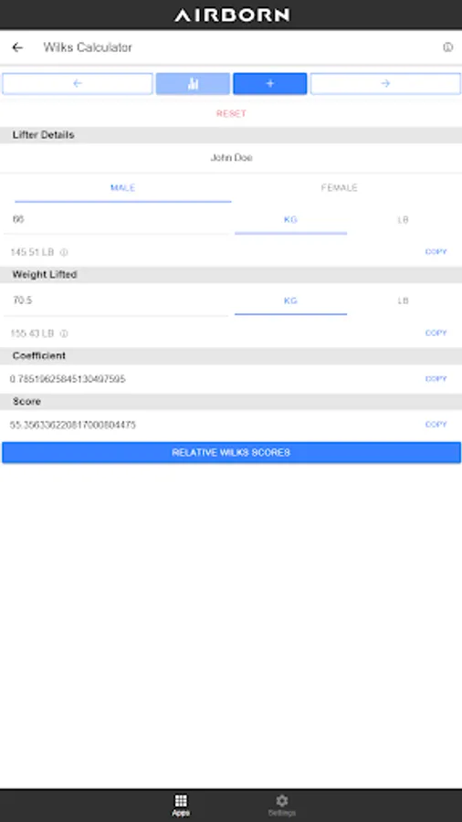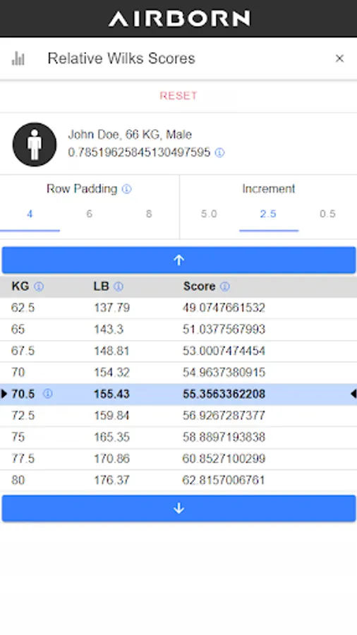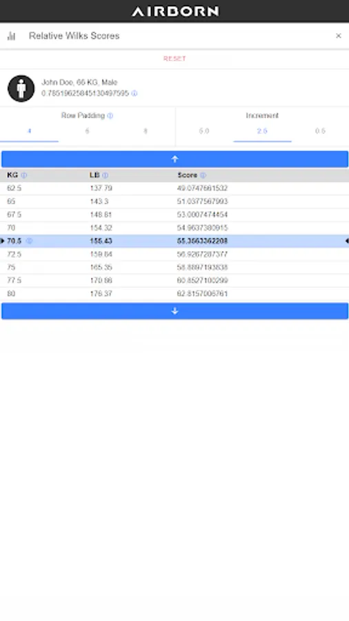 Wilks Calculator – A feature rich calculator that provides coefficients and scores based on gender, bodyweight and the amount of weight lifted. Scores are used to determine placement and the highest score wins. Extremely useful when sizing up your opponent. Extended features include: