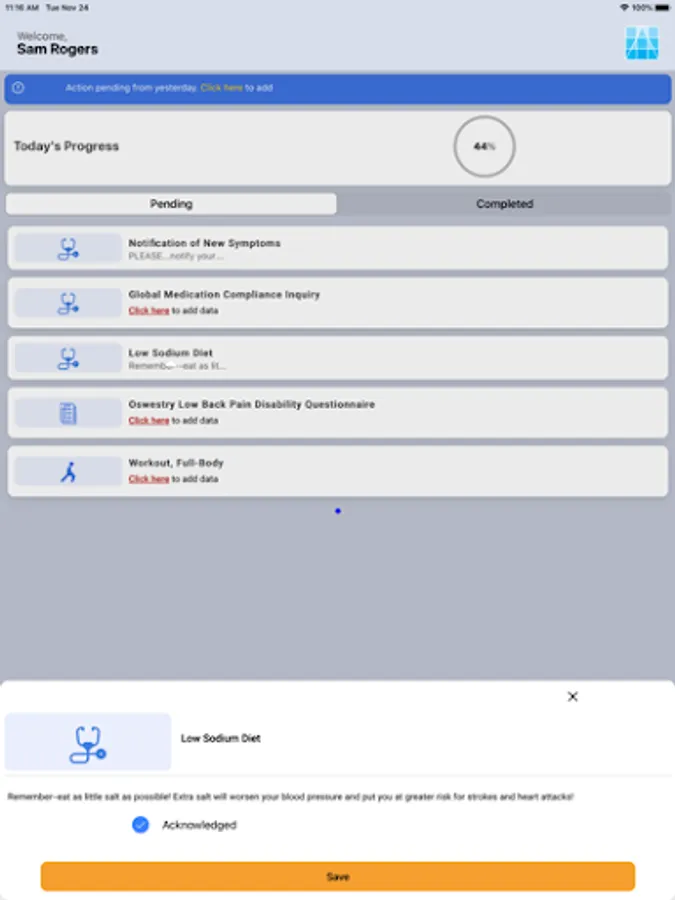This Health and Well-Being App provides online tools to provide personal, attentive virtual care and safety for Seniors living at home. This wholistic care system manages routine collection of key vital signs & behavioral data so caregivers can focus, prioritize and provide more personalized, quality care. Care givers, family members and seniors can collaborate and communicate within the APP.