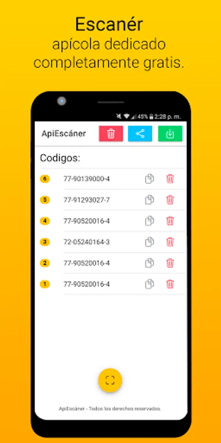 ApiEscaner is a totally free and easy to use barcode reader, optimized to read SENASA labels from bee drums. In order to simplify and speed up the task of loading, saving, or managing drum codes, saving a lot of time and complications for honey producers and merchants in Argentina.