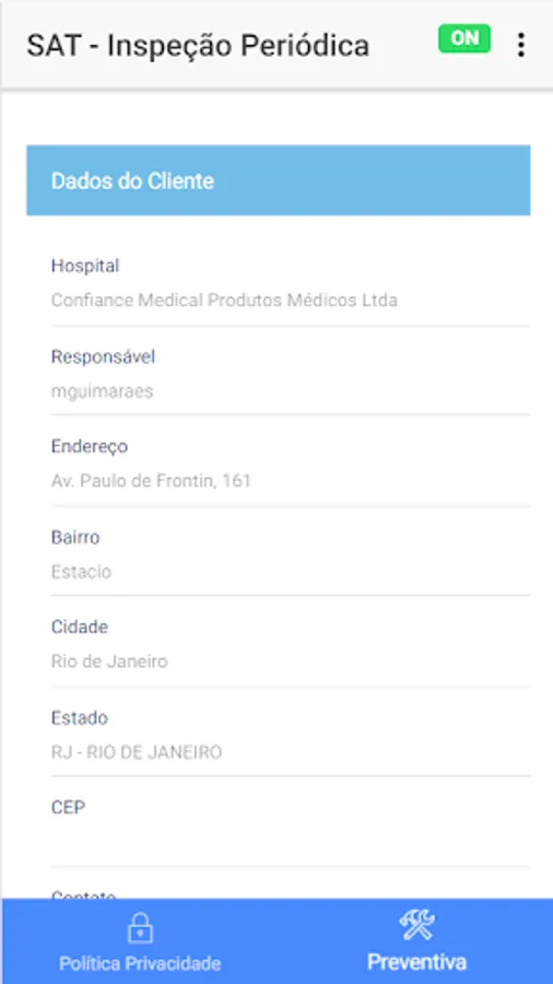 The app provides information about the equipment that must be inspected, and records the entire situation found.