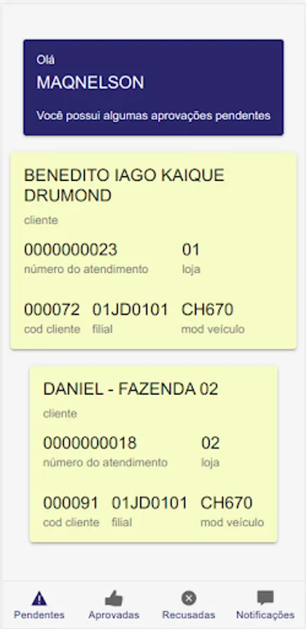 This application connects with microsiga protheus to make approvals for calls in the dealership modules.