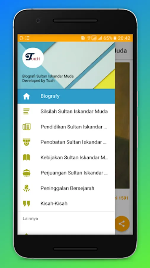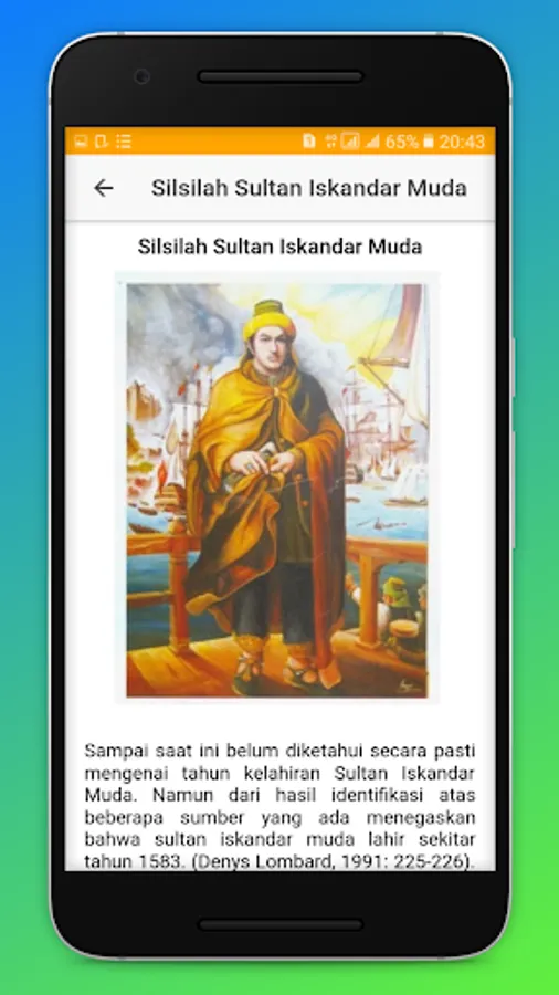 The biography of Sultan Iskandar Muda contains the genealogy, coronation and education of the sultan, history of struggle and relations with foreign nations, the sultan's policies, relics of the kingdom and stories about the Iskandar Muda sultan