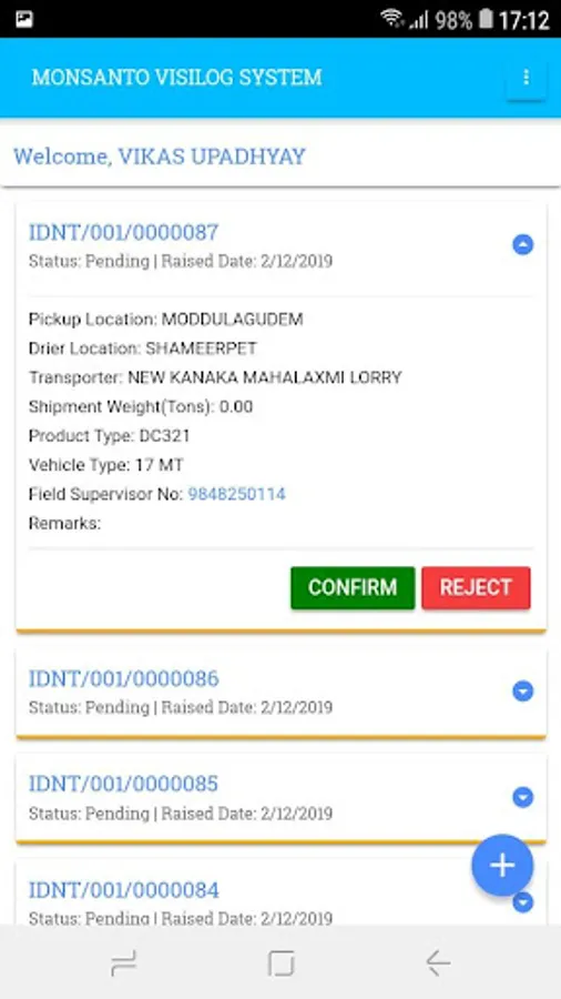 This application enable's user's to raise the indent to the transporter, after raising the indent one can track the empty vehicle once the transporter will accept the indent and will fill all the details of the indent. The time of reporting the vehicle in the application will be recorded and after loading get completed the dispatch time of the vehicle will also be recorded. The production executive will then upload the WEMA to finally dispatch the vehicle to drier.