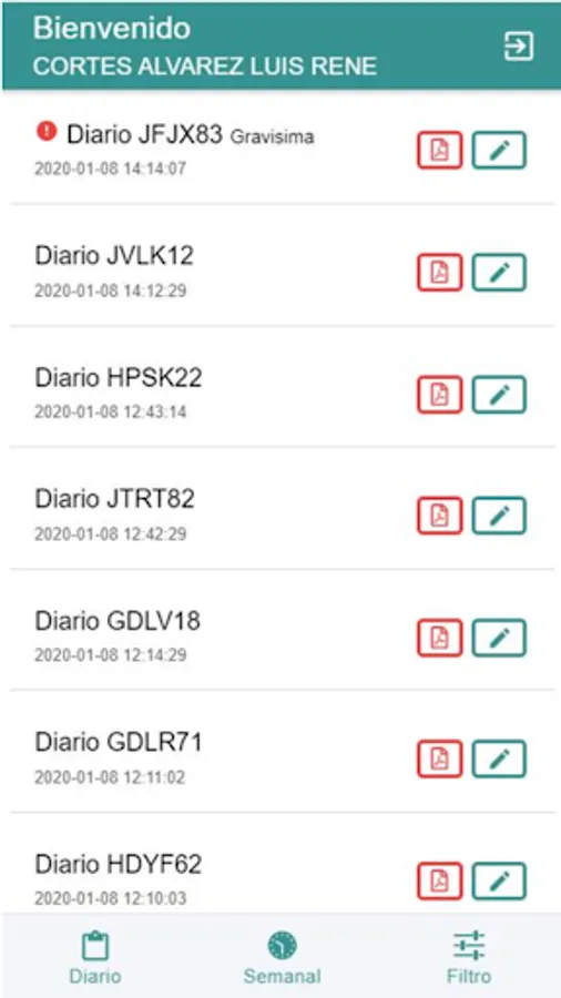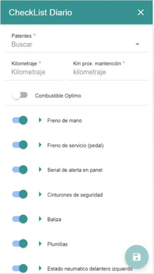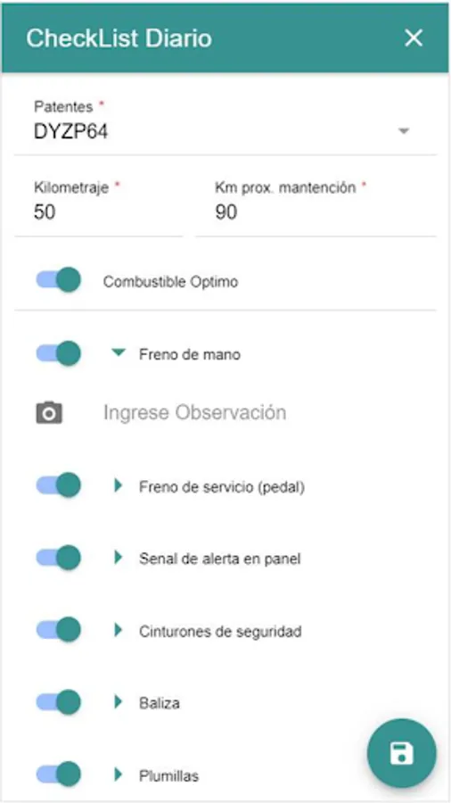 Application that allows to carry out the daily or weekly check list of the own vans or of collaborating companies of Codelco Division El Teniente
